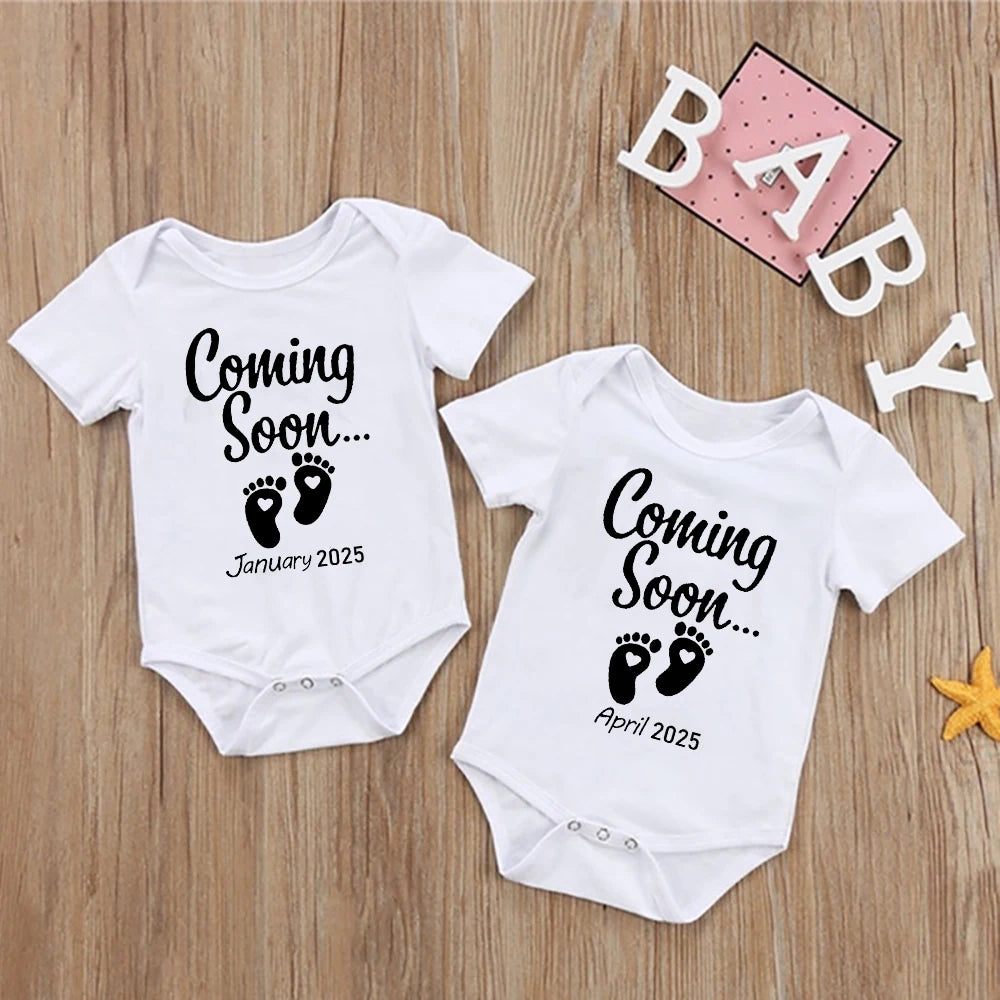 Baby Coming Soon 2025 Baby Announcement Newborn Bodysuit Summer Baby Romper Pregnancy Reveal Clothes Girls Boys Jumpsuit Outfits