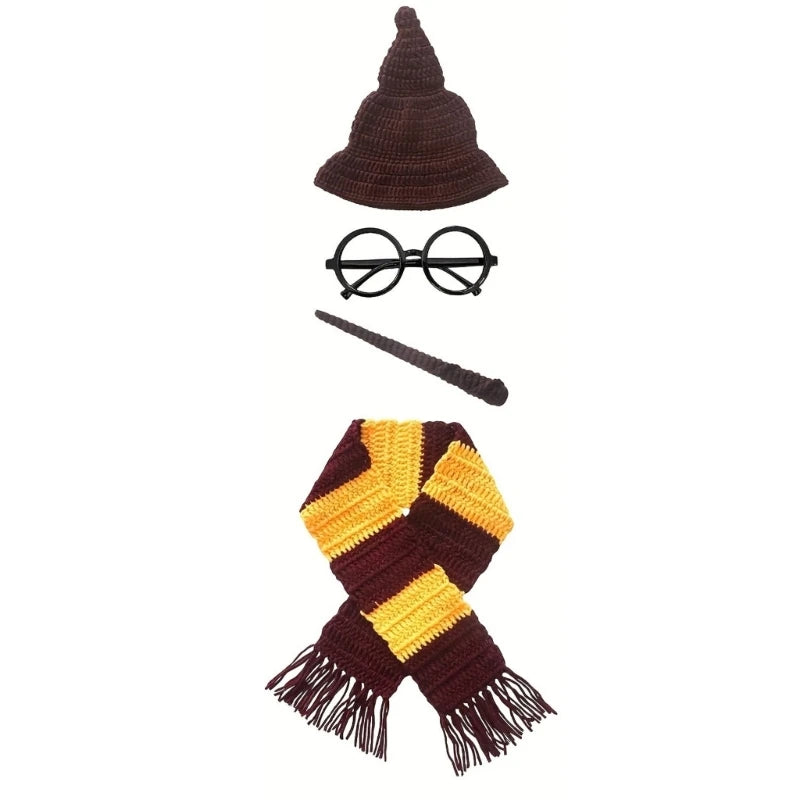 Baby Photo Costume Wizard Hat Glasses Scarf Newborn Photo Props Photoshoot Clothing Infant Skin-Friendly Photo Outfit